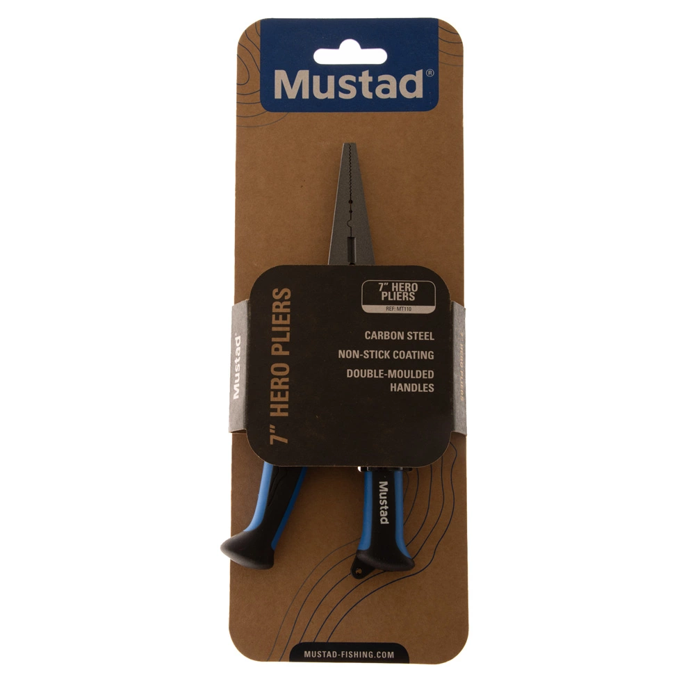 Lightweight and durable, the Mustad Hero Fishing Pliers are constructed from carbon steel with a Black Teflon finish to guarantee great saltwater corrosion resistance. These pliers feature textured jaws for a more secure hold. Double-moulded handles provide a great grip for use out on the water.